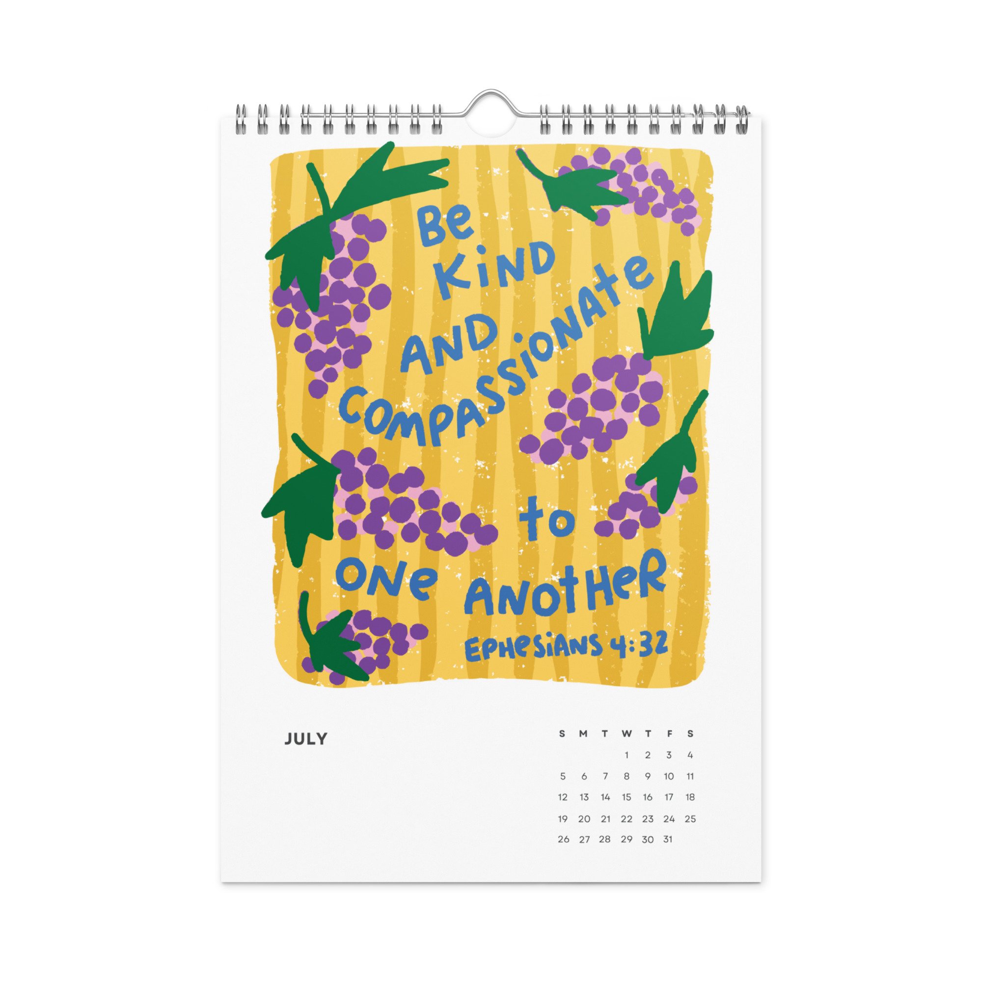 Celebrate the year with joyful, hand-illustrated art and meaningful scripture. Each page pairs a vibrant seasonal fruit with a meaningful Bible verse—reminders of joy, peace, and gratitude throughout the year.